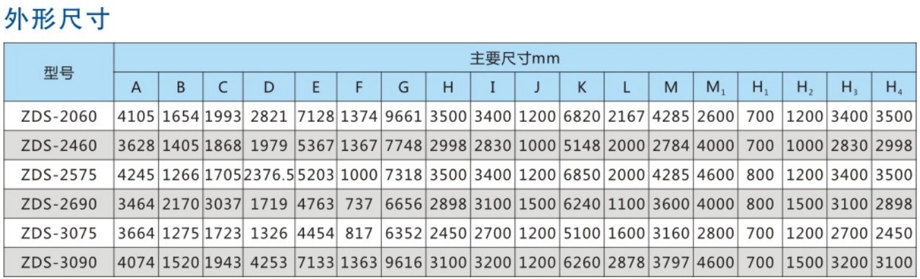 ZDS系列篩的篩面由不同傾角的三段組成,使物料層在篩面各段厚度近似相等;采用三軸驅(qū)動(dòng),同步激振原理,運(yùn)動(dòng)狀態(tài)穩(wěn)定,篩箱運(yùn)動(dòng)軌跡為橢圓。橢圓等厚篩分有利于物料在篩面上的向前輸送、分層和透篩,故比普通直線篩和圓運(yùn)動(dòng)篩相比有較大的處理量和較高的篩分效率。而當(dāng)相同的處理量和相同的篩分效率時(shí),橢圓等厚篩具有較小的篩分面積,能節(jié)約投資。