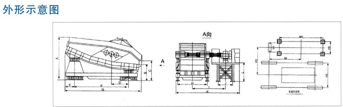 產(chǎn)品用途  ZDS系列橢圓等厚篩適用于冶金行業(yè)的燒結(jié)礦、燒結(jié)球團(tuán)、礦山行業(yè)的礦石分級(jí),煤炭行業(yè)分級(jí)篩分作業(yè)。和同規(guī)格的其它類型的篩機(jī)相比,處理量更大、篩分效率更高。是大型燒結(jié)廠、球團(tuán)廠、選礦廠、選煤廠、洗煤廠大型振動(dòng)篩,是國外引進(jìn)大型振動(dòng)篩的理想替代產(chǎn)品。工作原理及結(jié)構(gòu)特點(diǎn)  ZDS系列篩的篩面由不同傾角的三段組成,使物料層在篩面各段厚度近似相等;采用三軸驅(qū)動(dòng),同步激振原理,運(yùn)動(dòng)狀態(tài)穩(wěn)定,篩箱運(yùn)動(dòng)軌跡為橢圓。橢圓等厚篩分有利于物料在篩面上的向前輸送、分層和透篩,故比普通直線篩和圓運(yùn)動(dòng)篩相比有較大的處理量和較高的篩分效率。而當(dāng)相同的處理量和相同的篩分效率時(shí),橢圓等厚篩具有較小的篩分面積,能節(jié)約投資?! E圓等厚篩由篩箱、激振器、隔振系統(tǒng)、傳動(dòng)裝置等組成,根據(jù)被篩分物料的性質(zhì),篩板材質(zhì)可采用聚氨脂或耐磨合金。激振器的偏心塊由電動(dòng)機(jī)通過同步傳動(dòng)裝置帶動(dòng)旋轉(zhuǎn)。篩箱運(yùn)動(dòng)軌跡的橢圓度和方向角是可調(diào)的。環(huán)境要求  為減少物料對(duì)篩面的沖擊,要求給料落差不大于500mm,給料方向要與篩面上物料運(yùn)動(dòng)的方向一致。物料給料寬度A和篩箱寬度B之間應(yīng)保持0.8BKA≤0.9B篩機(jī)上方應(yīng)裝設(shè)密封罩和抽風(fēng)除塵設(shè)施,密封罩上應(yīng)有檢修孔,檢修孔的大小應(yīng)能使檢修人員方便進(jìn)出及更換篩板?! ÷┒?、密封罩及其它固定裝置應(yīng)與篩箱保持60mm以上的間隙,需要防塵時(shí),在間隙處采用軟連接密封。安裝與調(diào)試  1.安裝前,要檢查零部件是否完好、齊全,并對(duì)篩機(jī)安裝基礎(chǔ)進(jìn)行清理檢查。  2.為防止積水和彈簧間堆積灰塵雜料,四個(gè)彈簧支承面、液壓阻尼器支承面、傳動(dòng)平臺(tái)支承面應(yīng)高出地面250-300mm?! ?.安裝基礎(chǔ)上的預(yù)埋鋼板和地腳螺栓由用戶自備。四個(gè)彈簧支承座下的預(yù)埋鋼板須在同一水平面內(nèi),在長度方向上的平面度誤差不大于5mm,在寬度方向不大于2mm。  4.傳動(dòng)平臺(tái)的基礎(chǔ)應(yīng)在電動(dòng)機(jī)和同步器的高度調(diào)整好后,再進(jìn)行二次澆灌。待隔振架就位,彈簧調(diào)整到與上下支承面均成垂直狀態(tài)后方可把彈簧座與下部預(yù)埋鋼板焊牢、焊接時(shí),只許焊彈簧座的兩側(cè),不許焊彈簧座的兩端?! ?.彈簧在安裝前,應(yīng)對(duì)外形尺寸及剛度值進(jìn)行檢查,以保證各組彈簧的剛度和高度保持一致,彈簧安裝好后,要求所有彈簧與上下支承面保持垂直。  6.激振器與篩箱在出廠時(shí)已裝好,并一起發(fā)運(yùn),安裝現(xiàn)場(chǎng)須對(duì)原裝配情況進(jìn)行檢查,并重新緊固連接件,若安裝時(shí)已超過設(shè)備出廠時(shí)間六個(gè)月,應(yīng)將激振器拆開,將各零件清洗后重新組裝,在軸承的迷宮槽內(nèi)注入適量的二硫化鉬3號(hào)鈣基脂。重新安裝激振器時(shí),要保證同軸各組偏心塊的對(duì)稱中心線在同一平面內(nèi)。激振器裝配完畢后,用手轉(zhuǎn)動(dòng)偏心塊,如阻力過大或有卡死現(xiàn)象。必須找出原因加以調(diào)整?! ?.安裝同步器時(shí),要保證同步器三根軸的中心線與篩箱上三組激振器的中心線平行??蛰d時(shí)在垂直方向上前者應(yīng)比后者低2-3mm,在前后方向,同步器各軸的中心線與激振器中心線應(yīng)在同一平面內(nèi)。  8.若安裝時(shí)已超過設(shè)備出廠時(shí)間6個(gè)月,應(yīng)拆開清洗﹔更換新的潤滑油(齒輪浸油深5-10mm,根據(jù)溫升調(diào)整),重新裝配時(shí),要注意齒輪上的標(biāo)記和齒輪軸上鍵的方向是否正確?! ?.安裝電動(dòng)機(jī)和皮帶傳動(dòng)裝置時(shí),利用電動(dòng)機(jī)座上的調(diào)節(jié)螺栓調(diào)整電動(dòng)機(jī)的位置。保證皮帶傳動(dòng)具有足夠的張緊力。  10.安裝萬向連接軸時(shí),先將內(nèi)外花鍵清洗干凈,并涂上適量的二硫化鉬3號(hào)鈣基脂。各部位就位后反復(fù)擰緊螺栓,并在皮帶傳動(dòng)和萬向連接軸上方安裝好防護(hù)罩。  11.激振器潤滑油管與篩體連接須用軟管。使用與維護(hù)  1.篩機(jī)應(yīng)避免帶料起動(dòng),運(yùn)行平穩(wěn)后再給料。停車前應(yīng)先停止給料,待篩面上物料全部走過后才能停篩。  2.工作過程中應(yīng)經(jīng)常觀察篩機(jī)運(yùn)轉(zhuǎn)是否平穩(wěn),若發(fā)現(xiàn)運(yùn)轉(zhuǎn)不正常或有撞擊聲,應(yīng)立即停車檢查。如遇突然事故停機(jī)時(shí),應(yīng)設(shè)法將篩面上物料排除,以免下次開機(jī)時(shí)帶料起動(dòng),影響使用壽命。彈簧之間,容易積聚礦粉和雜質(zhì),影響彈簧的正常工作,應(yīng)經(jīng)常用壓縮空氣進(jìn)行清理。經(jīng)常檢查篩機(jī)上各連接螺栓緊固情況,若發(fā)現(xiàn)有松動(dòng)應(yīng)及時(shí)擰緊?! ?.經(jīng)常檢查篩板與襯板的磨損情況,若發(fā)現(xiàn)磨損嚴(yán)重或關(guān)鍵部分出現(xiàn)裂縫,應(yīng)及時(shí)更換或修補(bǔ)。